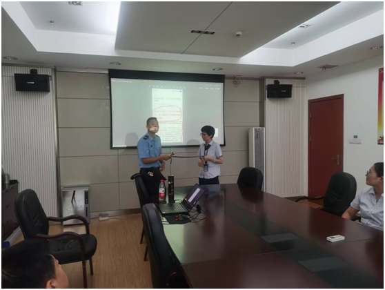 在演示環節,消防教員針對不同類型消防器材,從功能特性、適用場景、操作規范等維度進行專業化解讀。利用現場演示與互動教學的方式確保分中心每位干部職工都能熟練掌握滅火器材的使用方法,提升應急能力。